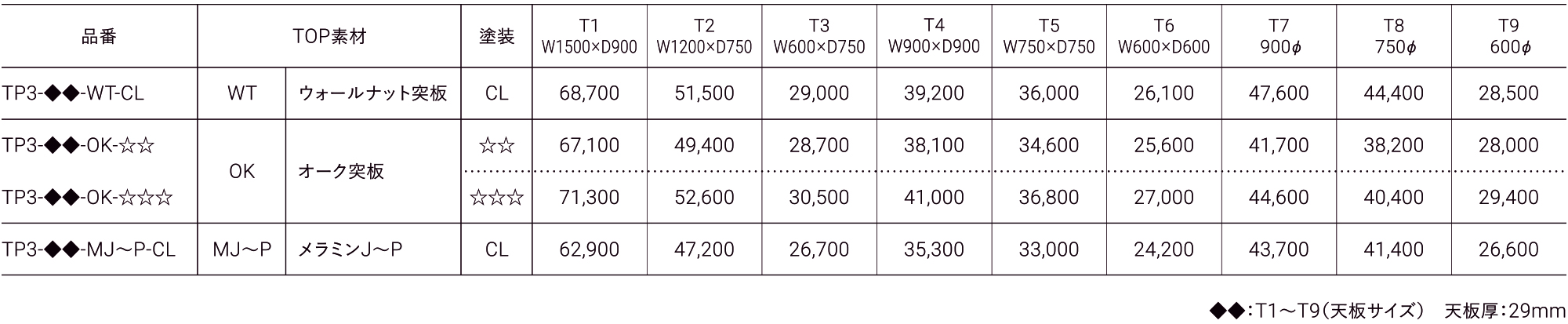 TOP 素材 :WT(ウォールナット) OK(オーク)